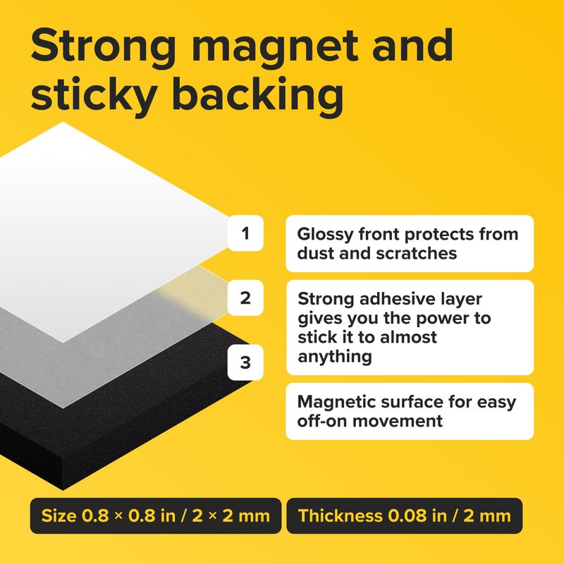 - PREMIUM Quality Material with Long Lasting Anisotropic Magnet! 1 Tape Flexible Magnetic Sheet of Self Adhesive Magnetic Squares (each 4/5" x 4/5")