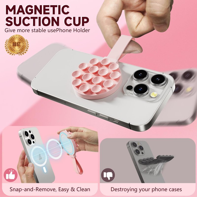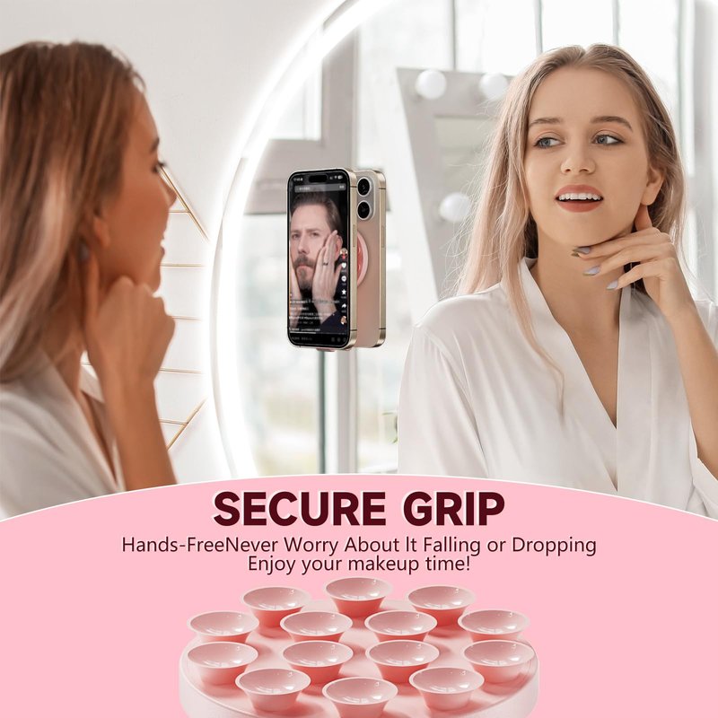 - Versatile and Easy to Use:Our Magnetic silicone mount attaches to stick your phone on any smooth surface, such as vanity mirrors, glass windows, computer screens, refrigerators, tiles, etc. Ensuring a firm grip on the device when taking photos, videos, chatting, watching movies, letting you free your hands anytime, anywhere!