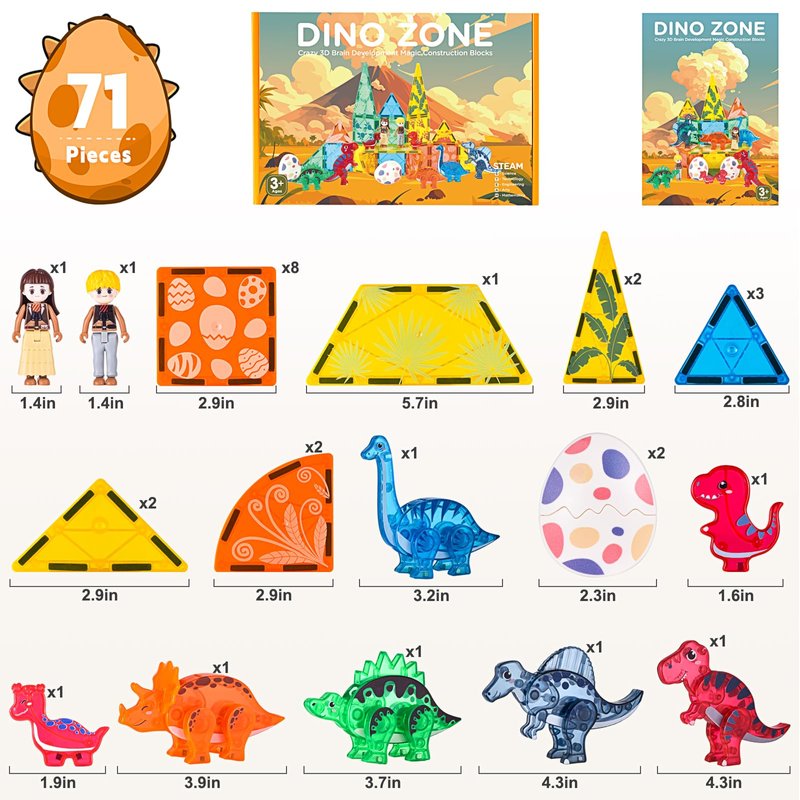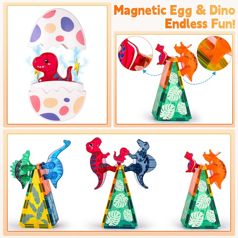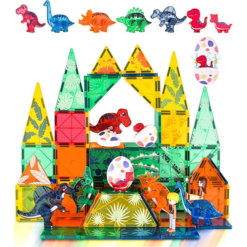 Magnetic Tiles Dinosaurs Toys for Kids 3-5 5-7, Magnet Eggs Dinosaur Animals Construction Tile for Toddlers Ages 5-7, Building Blocks for Boys Girls Ages 4-8 8-12 Year Old
