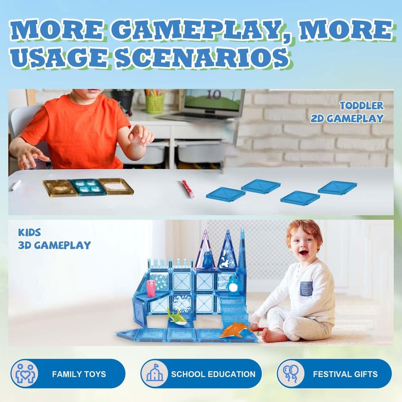 - Perfect Gift: Ideal for children aged 3 and up, this magnetic tile set makes a great gift for birthdays, holidays such as Christmas, Halloween, etc, or any special occasion, providing educational fun for both boys and girls.The application scenarios are also very wide, which can be applied to household toys, kindergartens, educational institutions, gifts, etc.If you have any questions, please feel free to consult and we will do our best to serve you.