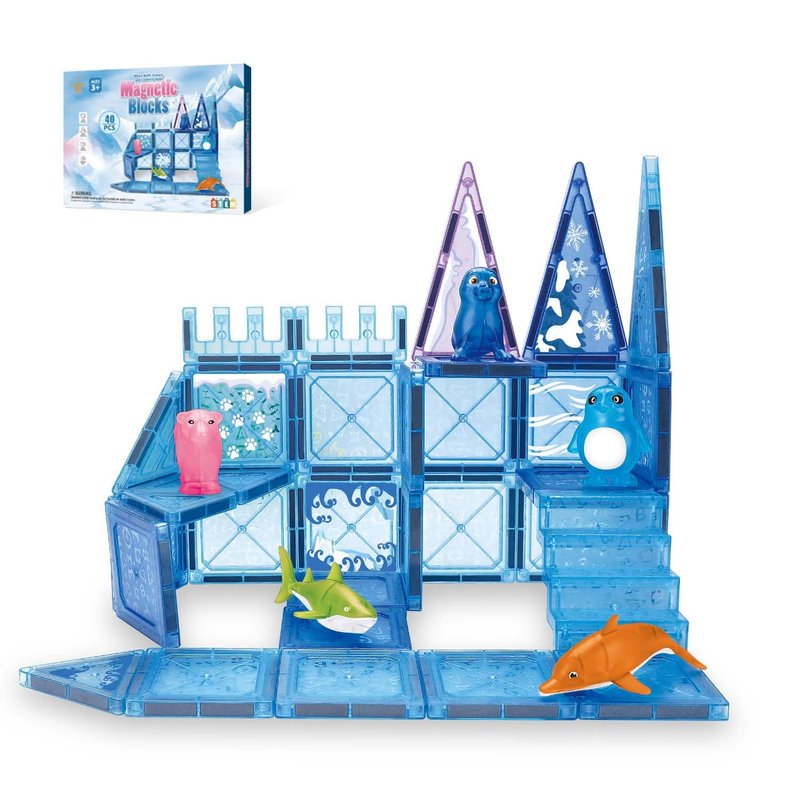 Magnetic Tiles Magnetic Construction Set, Magnetic disc STEM Sensory Educational Games Toys Preschool Building Stacking Block Learning Toys Gift for Toddler Age 3+ Boys Girls Kids 40pcs Sea World