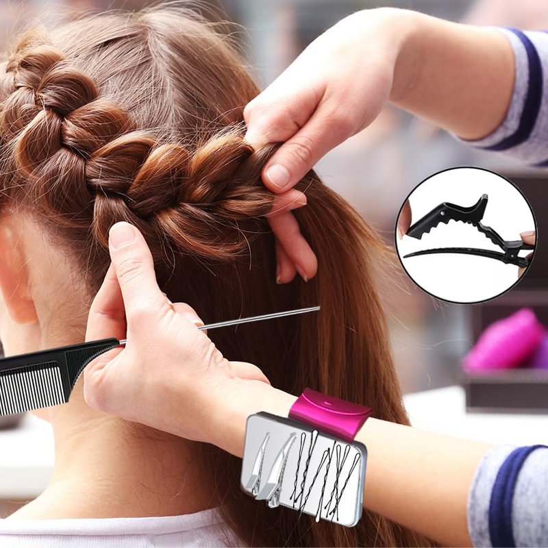 - Package Included: Magnetic silicone wristband *1; Rat tail comb*1; Edge brush*1; Teasing brush*1; 6 pieces of alligator clips.