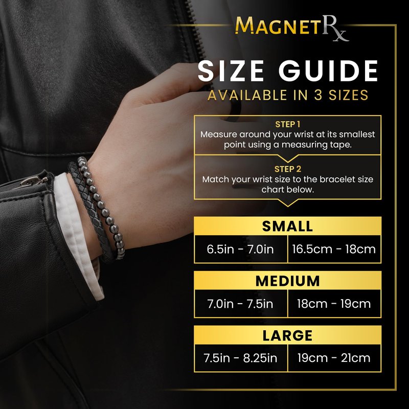 MagnetRX is globally recognized as the leader in magnetic products. Shop our full collection of effective products on Amazon today! Our Magnetic Bracelet, a stylish and functional accessory that can add a touch of elegance to any outfit. Made with high-quality materials, this bracelet features magnets that are strategically placed to create a unique and beautiful pattern. The hematite magnets design of these magnet bracelet for men & women not only looks great, but it also provides a comfortable and secure fit on your wrist. Its lightweight construction ensures you can wear it all day, while the adjustable string ensures a perfect fit for most wrist sizes. Our hematite bracelet men & women is not only stylish but also affordable. It makes a great gift for yourself or your loved ones. The women and mens magnetic bracelet comes in a variety of colors and finishes, allowing you to select the perfect one to complement your unique style. Whether you're looking to add a touch of elegance to your outfit or just want a fashionable accessory, our bracelet magnet is a must-have. It is a versatile piece that can be worn on any occasion, making it the perfect addition to your jewelry collection. Order now and add this