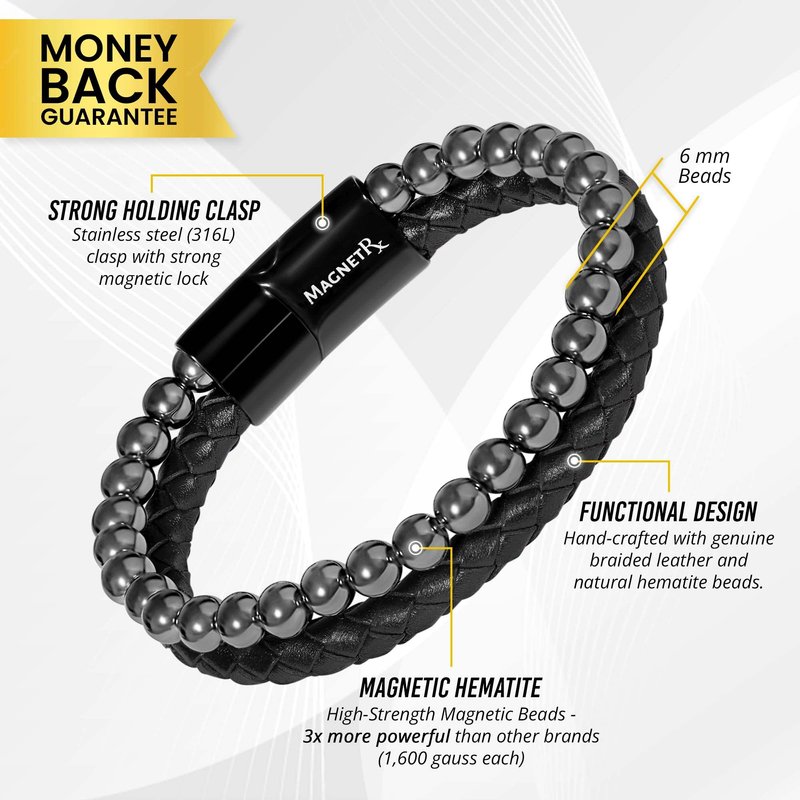- ☑️ ULTRA STRENGTH HEMATITE – The MagnetRX hematite magnetic bracelet contains the highest strength magnetic hematite stones - 3x more powerful than other magnetic hematite bracelets on the market. Magnetic bracelets have been used for centuries to effectively reduce aches, discomfort, and improve circulation. This magnetic beaded bracelet will add a touch of natural beauty to any outfit, while ensuring you look and feel your absolute best while wearing it!