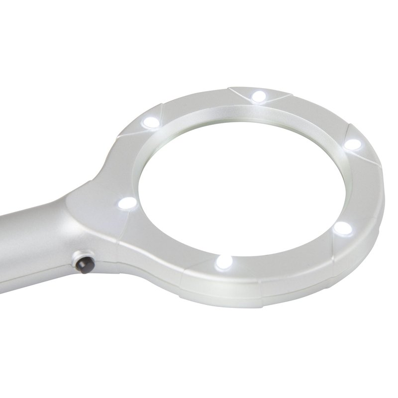 Magnifying Glass with LED Light, Lightweight Handheld Lighted 4X Magnifier (Silver) by Stalwart