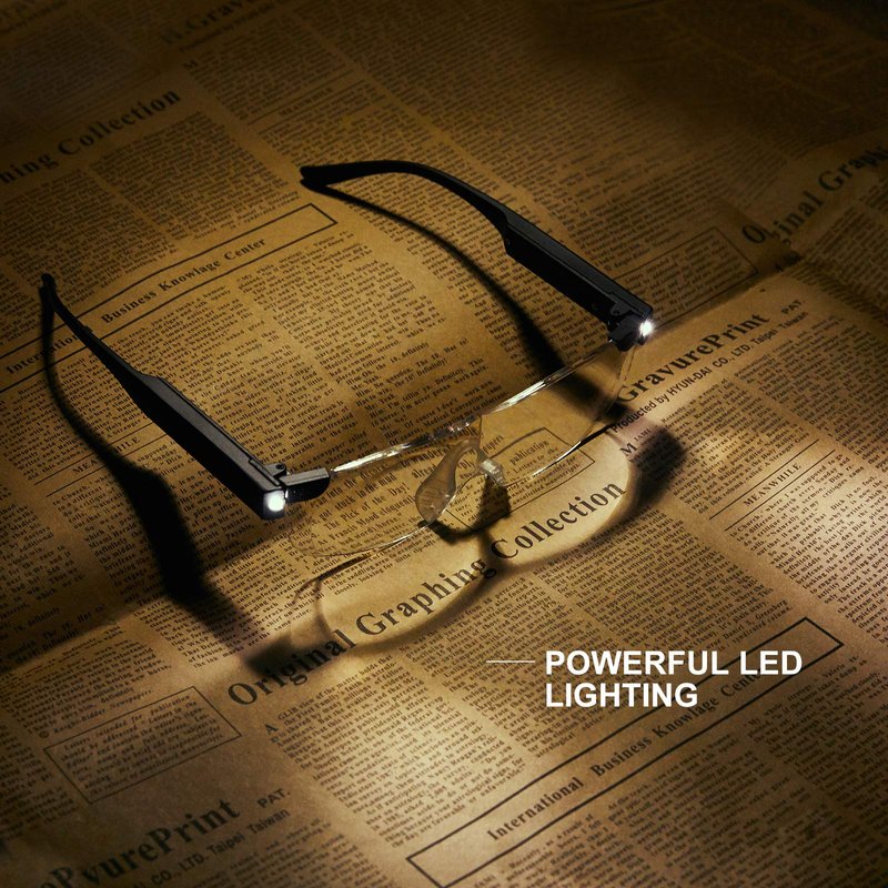 - A 200% magnifying lighted eyeglasses
