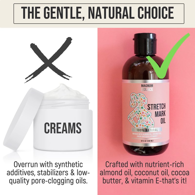 Magnum Solace Stretch Mark Oil for Pregnancy – 100% Natural Belly Oil for Pregnancy with Cocoa Butter Oil, Almond Oil for Skin – Alternative to Stretch Mark Cream for Pregnancy
