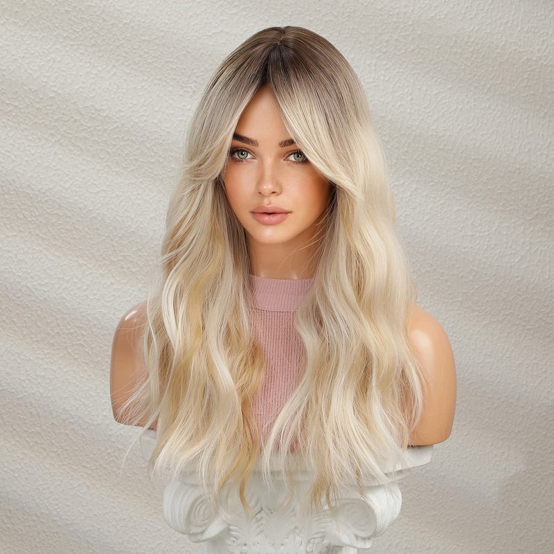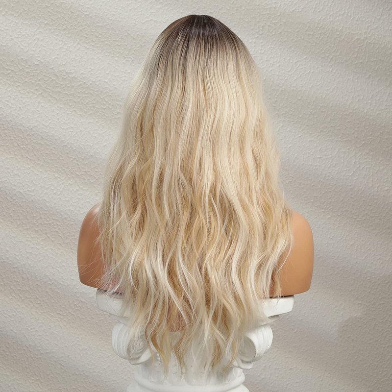 MAGQOO Blonde Wig for Women Long Curly Wavy Ombre Blonde Wigs Dark Roots Two Tones Synthetic Heat Resistant