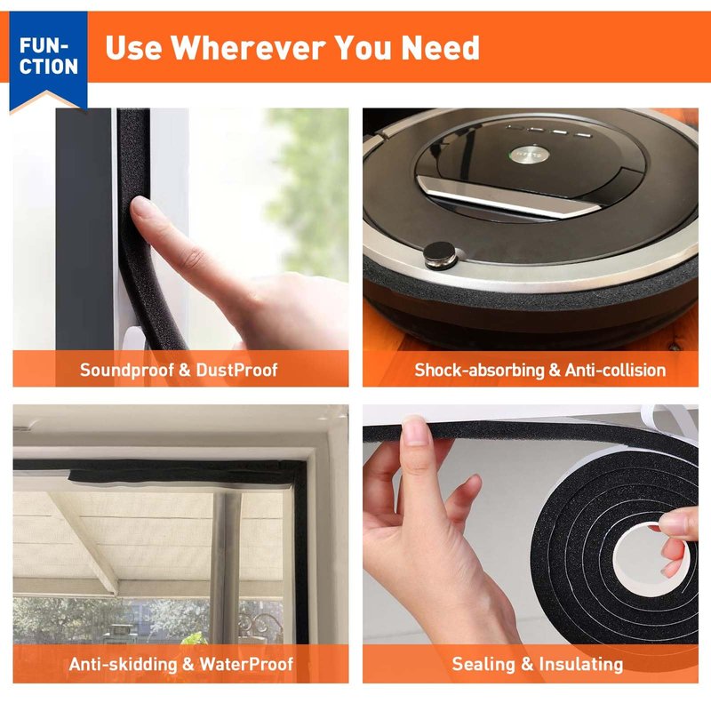 - MULTI-FUNCTIONAL FOAM TAPE - This open cell foam weather stripping can be used for insulated, anti-collision, shock-absorbing, sound-absorbing, weatherproof, insect-proofing, and so on.