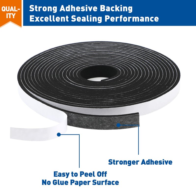 - STRONG ADHESIVE - The door weather stripping adopts a stronger adhesive backing which ensures the foam tape can stay in place without falling off once applied.