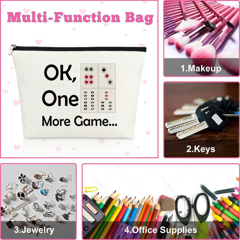 - Mahjong Lover Gift Funny:Are you looking for a unique gift for Mahjong lovers? When you show up with this bag, she will be attracted to your mahjong cosmetic bag. This Mahjong inspired pack is perfect for girls who love to play Mahjong. A perfect gift for family, friends or anyone who loves this makeup bag.