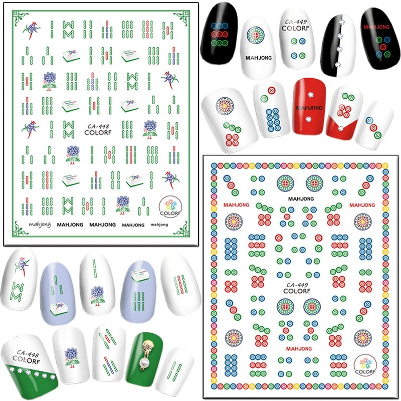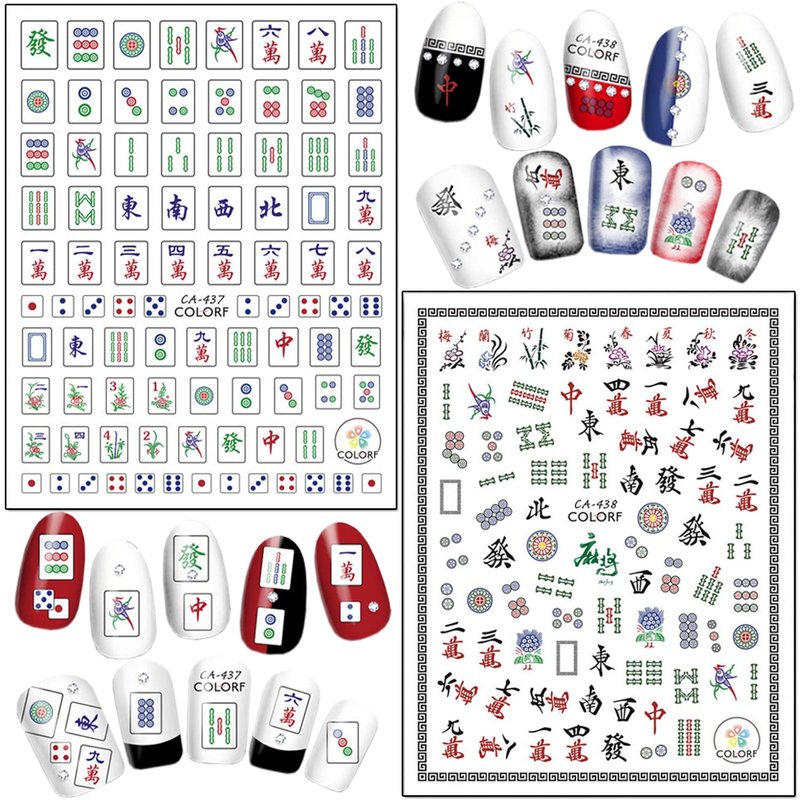 - 【Quantity】You will get 6 sheets Mahjong nail art decals, 3D self-adhesive nail art design, each paper measure 4.1 x 3.1 inches(10.3 x 8 cm). This is a funny nail decoration for mahjong lovers.(Maybe it can bring some good luck)
