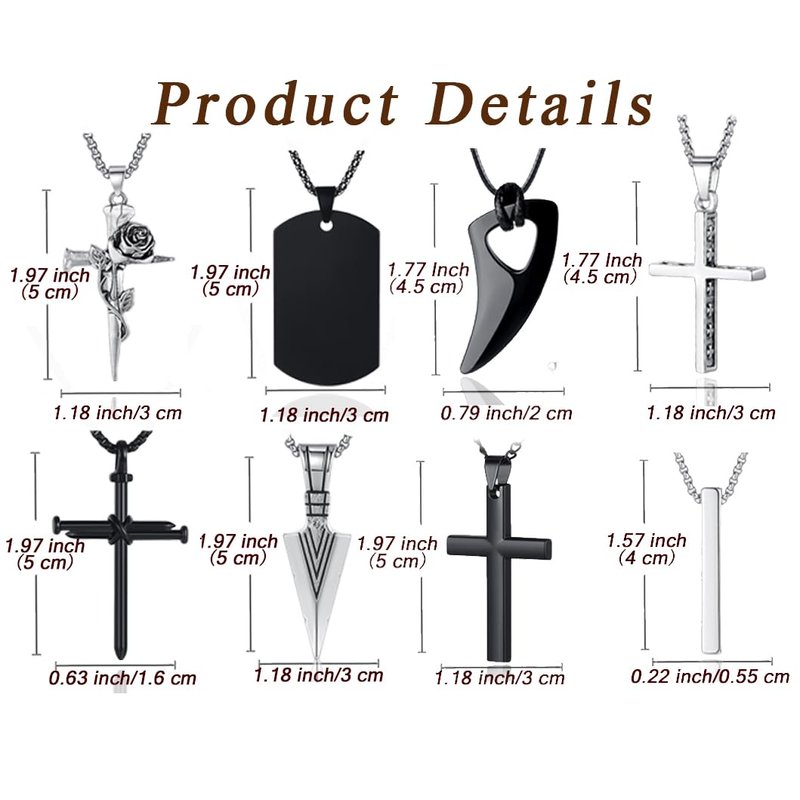 - [Great Jewelry Gift]: These 8 pcs pendant necklaces for men and boy are carefully selected for their simple and popular style and color. They're perfect for daily wear or as a gift for your loved ones, family, friends, and the theme of cross pendant necklace set especially good for those with religious beliefs.