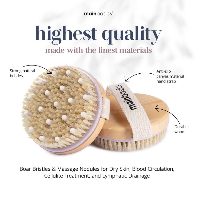 MainBasics Dry Brush | Dry Brushing Body Brush for Lymphatic Drainage, Dry Skin, Cellulite, Blood Circulation with Massage Nodes Exfoliating Body Scrubber for Flawless Skin