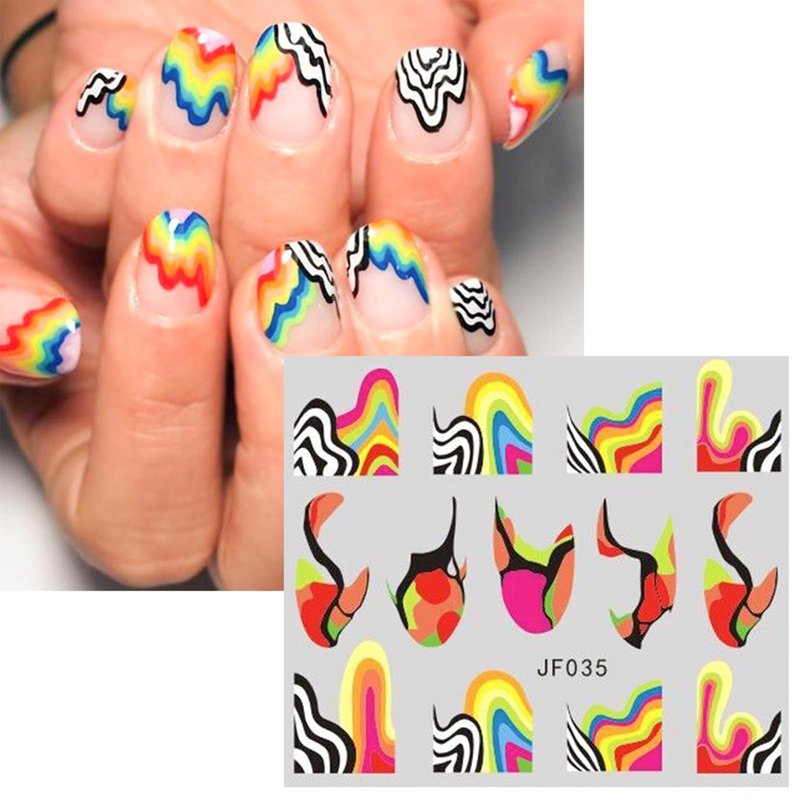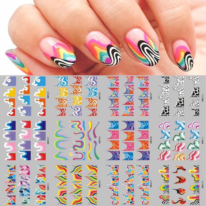 MAIOUSU STORE 12 Sheets Rainbow Slider Nail Water Transfer Stickers French Tips Nail Stickers Colorful Geometric French Tips Nail Decals Watermark Nail Designs Manicure Stickers(10)
