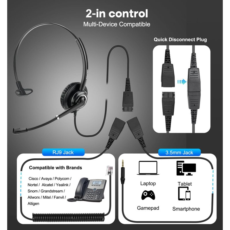- HIGH QUALITY SOUND: RJ9 headset with noise cancelling microphone and HD audio sound ensure easy and clear communication for call centers, offices and home phones even in noisy environment. Communication headset with wideband audio solution offers natural and clear hearing. Anti acoustic shock for hearing protection.
