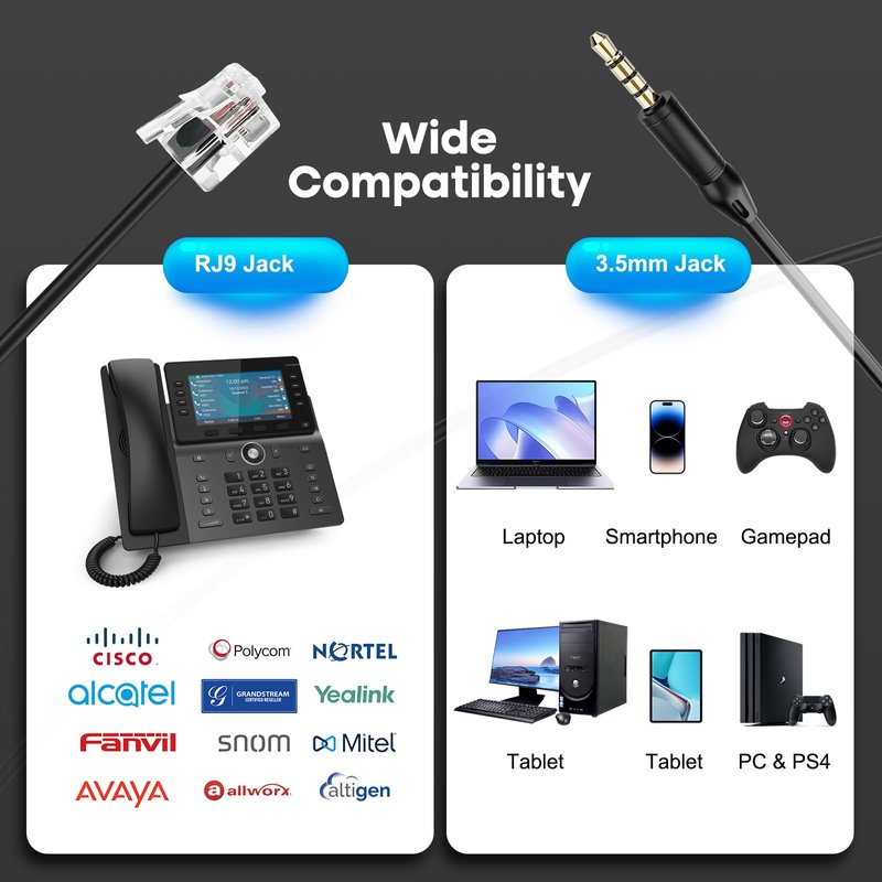 ✔With RJ9 Connector for Cisco IP Phones of RJ9 headset port