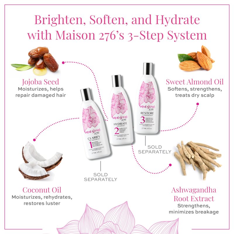 - REVITALIZE SILVER, GRAY & BLONDE HAIR: Maison 276 HYDRATE Shampoo is a gentle cleanser formulated to remove product build-up and replenish moisture, resulting in soft, hydrated and revitalized silver, gray, and blonde hair; Use alone or with 3-Step System