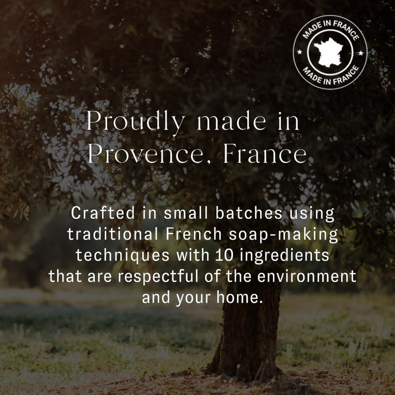 - Crafted in France using traditional methods, this Marseille soap is ideal for your hands, made from plant-based ingredients. Volume: 400ml.