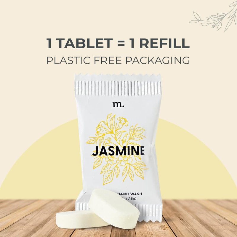 - THIS PACK INCLUDES: 4 pack JASMINE foaming hand soap refill tablets. Also comes in UNSCENTED, ROSE and LILY; check our store for more. Each hand soap foam refill tablet lasts 6 to 8 weeks on average.