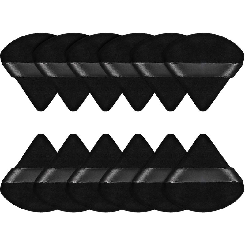 Maitys Fiber Triangular Makeup Puffs, 12 Pieces, Black, Soft Reusable Face Cosmetic Tools for Foundation, Powder, Blush, Concealer & More