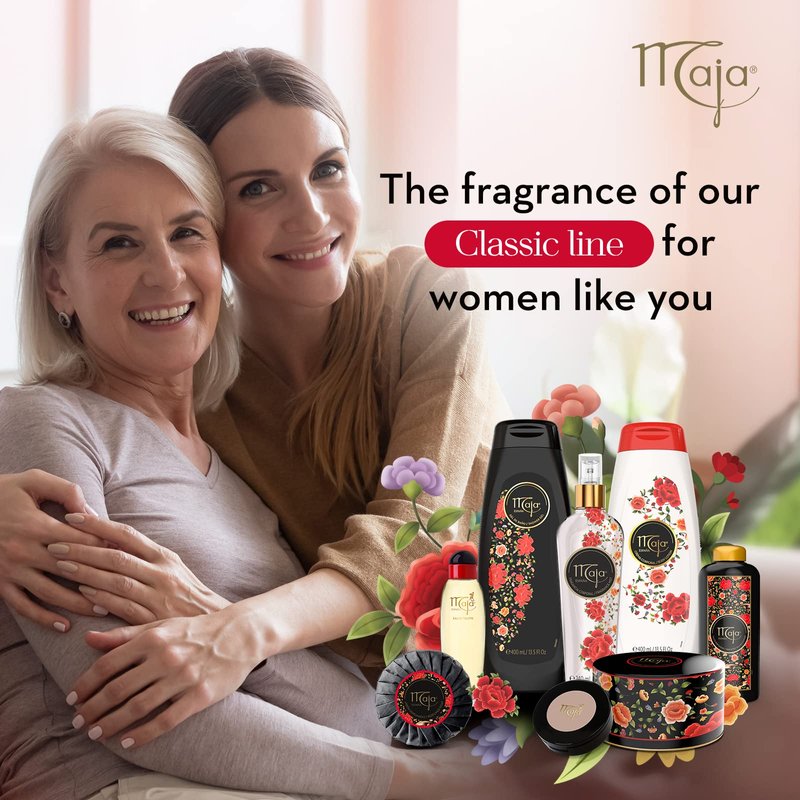 Maja Perfumed Talcum Powder, Talcum Powder with Maja's Classic Oriental Scent to keep your Skin Dry and Fresh, Talcum for Silky Legs Delicate Aroma 2-Pack of 7 Oz each, (Packaging May Vary)