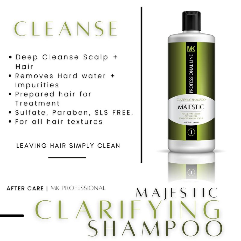 Majestic clarifying shampoo is specially formulated to remove buildup and residues from hair and prepare it to receive professional Brazilian keratin treatment and most other hair treatments. It can be used on all kinds of hair, including chemically treated hair.