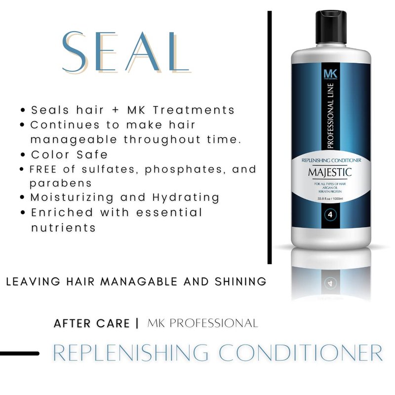MAJESTIC KERATIN REPLENISHING SHAMPOO AND CONDITIONER is specially formulated to ensure the ultimate protection of the keratin, Botox and protein treated hair to conserve brightness, softness and strengthen. This product is enriched with keratin, moisturizing ingredients and Argan oil and has a balanced pH that is compatible with the natural pH of your hair. Safe on Colored treated hair and all types for hair. Sodium chloride and sulfate free. Safe for daily use.