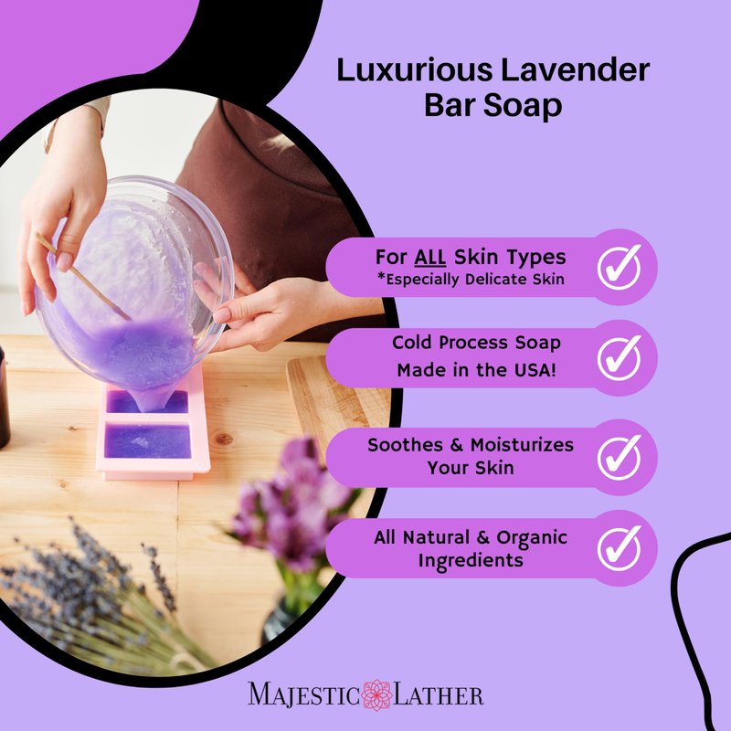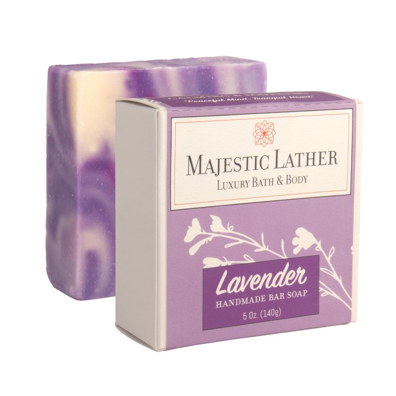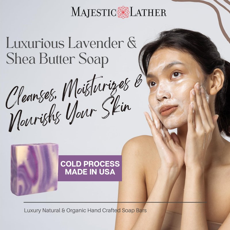 Majestic Lather Lavender Luxury Handmade Bar Soap for Face & Body - Gentle Skin Soothing, Moisturizing and Nourishing. Vegan & Cruelty Free. Natural Cold Process for All Skin Types