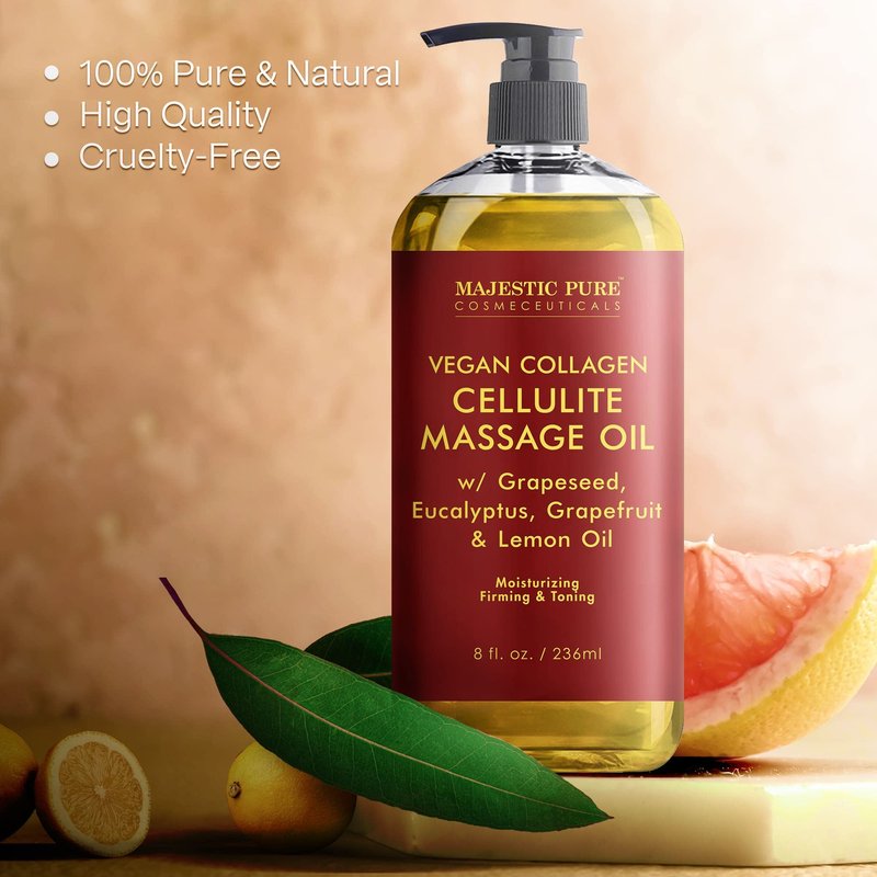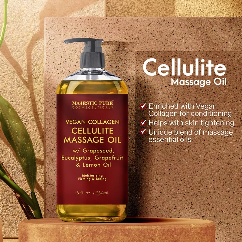 - Specifically formulated to target cellulite, Majestic Pure Anti Cellulite Massage Oil helps smooth and firm skin with natural ingredients known for their toning properties.