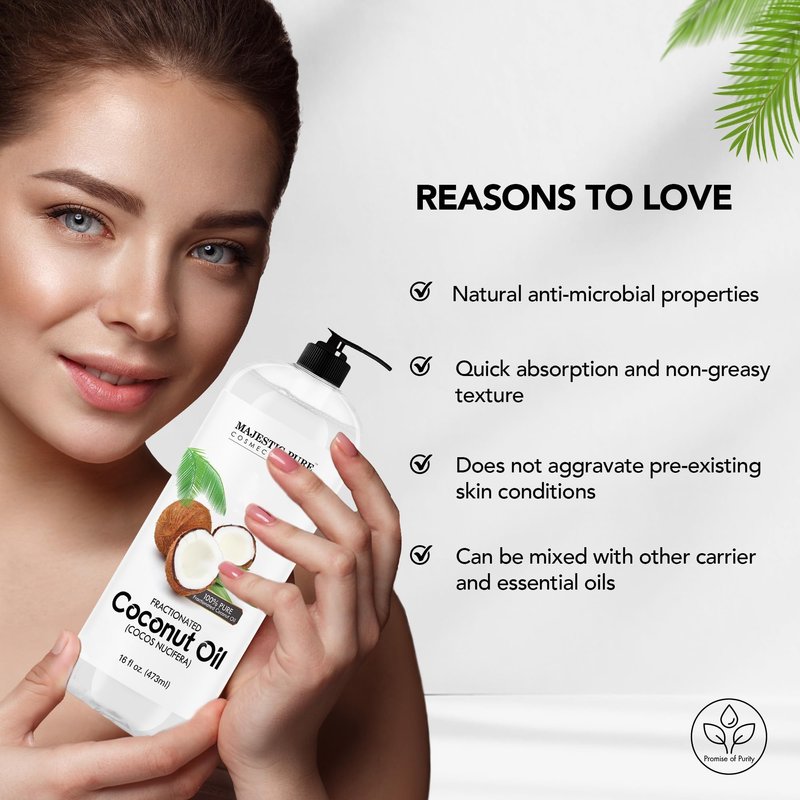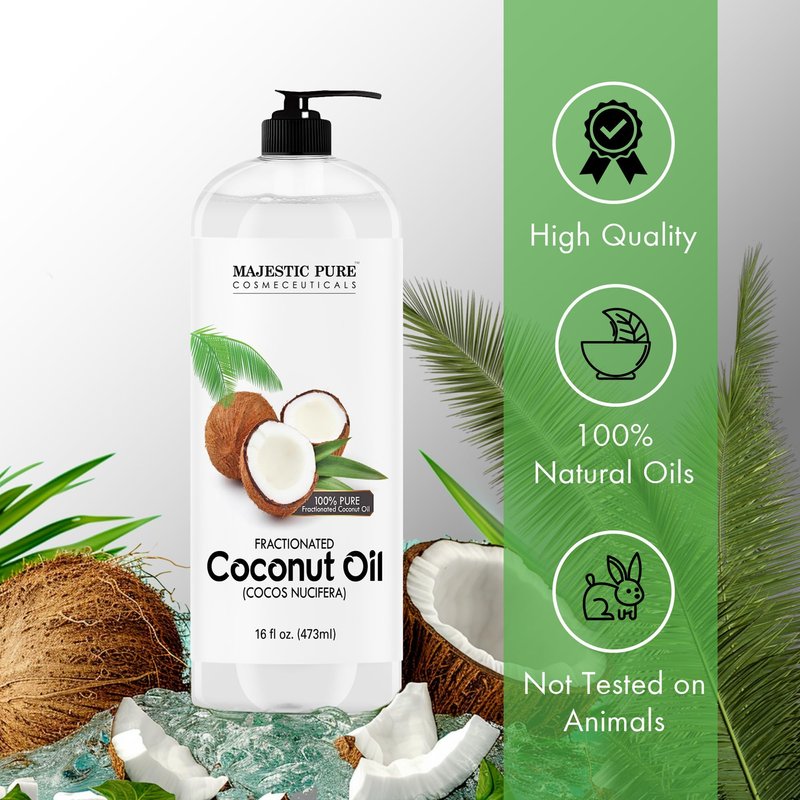 MAJESTIC PURE Fractionated Coconut Oil | Relaxing Massage Oil for Massage Therapy | Liquid Coconut Oil for Diluting Essential Oils | Coconut Oil for Skin, Lip, Body, Hair Oil, Moisturizer | 16 fl oz