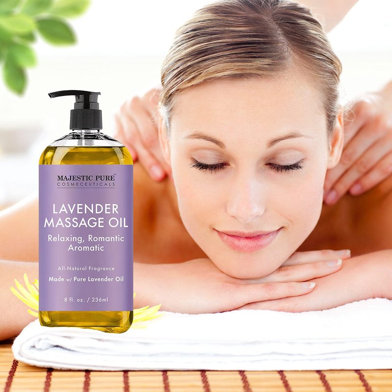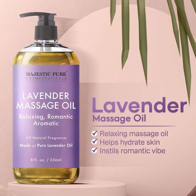 MAJESTIC PURE Lavender Massage Oil - Hydrating, Calming, Warming, Relaxing & Rejuvenating Body Oil - Premium Grade, Made with Natural Oils - Skin Care for Men and Women - Made in USA - 8 fl oz