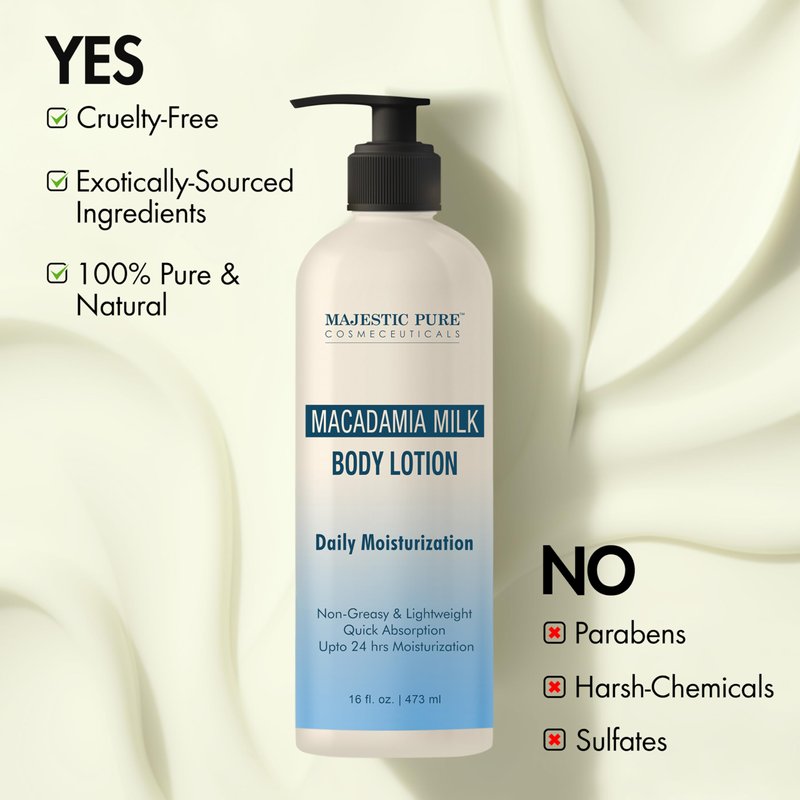 - Daily Deep Moisturization: Majestic Pure Macadamia Milk Body Lotion for women helps provide up to 24 hours of deep moisturization which is important for skin to fight off dryness and dullness