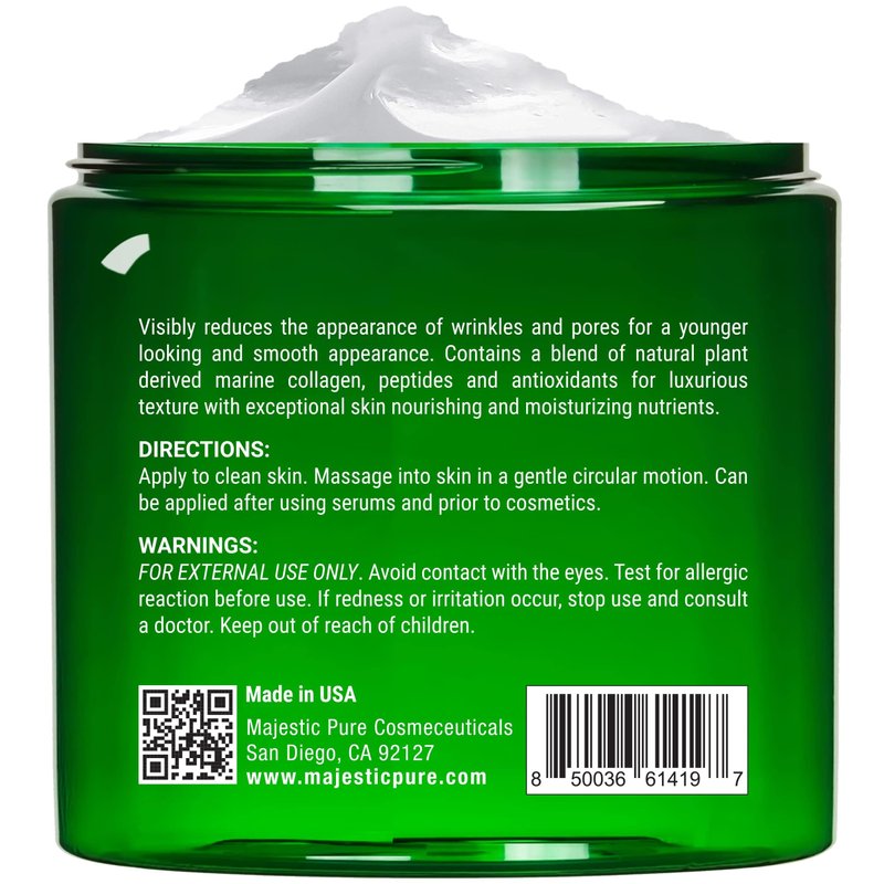 - Moisturized Skin – Visibly reduces the appearance of wrinkles and pores for a younger looking and smooth appearance. Contains a blend of natural plant derived marine collagen, peptides and antioxidants for luxurious texture with exceptional skin nourishing and moisturizing nutrients