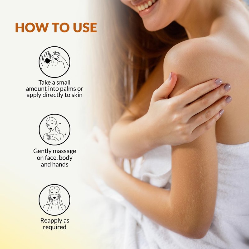 - Easy Application: Take a small amount of oil into the palms or apply directly to the skin. Gently massage on the face, body and hands. Reapply if required