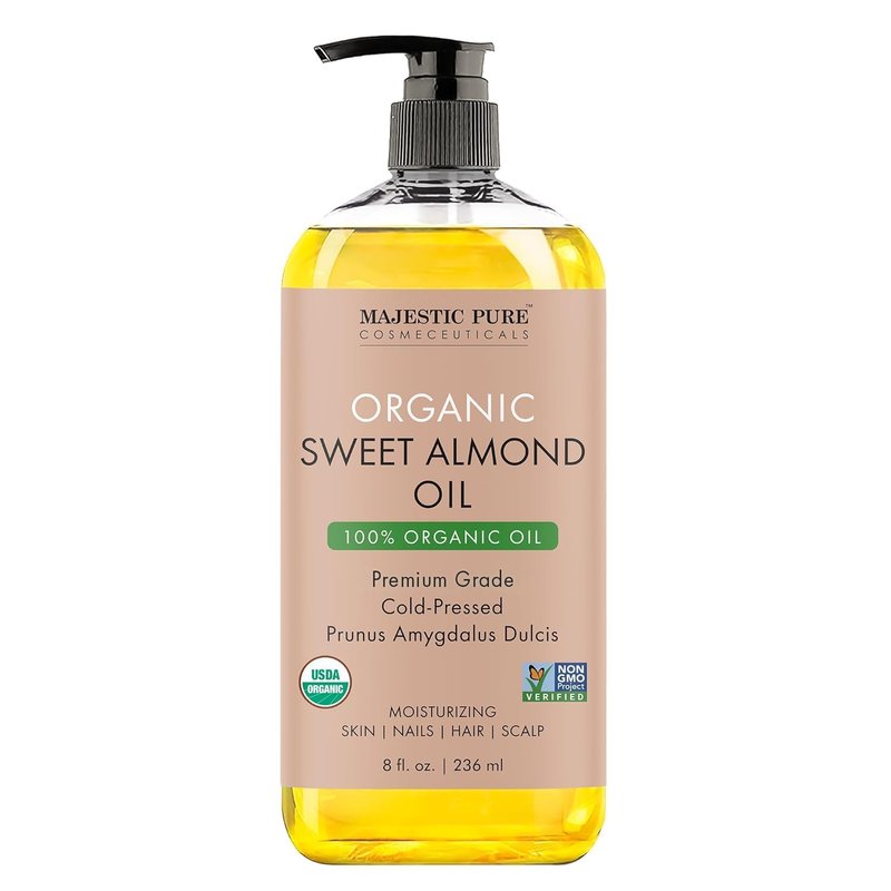 MAJESTIC PURE USDA Organic Sweet Almond Oil | 100% Pure & Natural Cold Pressed Oil Sweet Almond Oil for Skin, Face, Nails, Hair, Scalp & Massage | 8fl oz