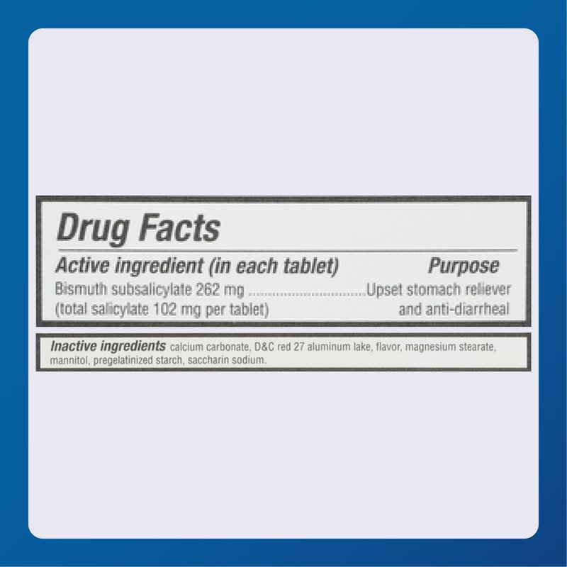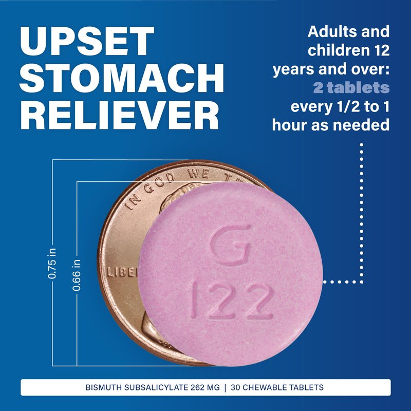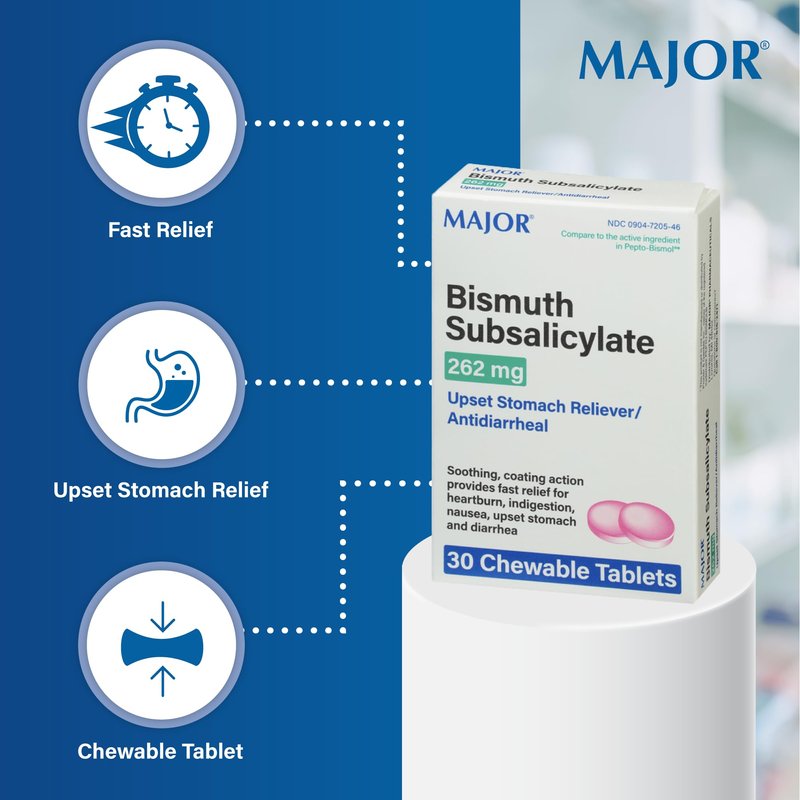 MAJOR Bismuth Subsalicylate 262mg Chewables - Offers Heartburn, Indigestion, Nausea, Diarrhea, and Upset Stomach Relief - Antidiarrheal - 30 Chewable Tablets