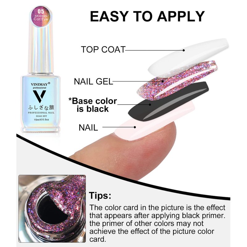 - WARM TIPS:You need to use some skills to apply this 9D cat eye gel nail polish, as for beginners, we suggest you can learn more about from videos, the practice can get a satisfying effect.