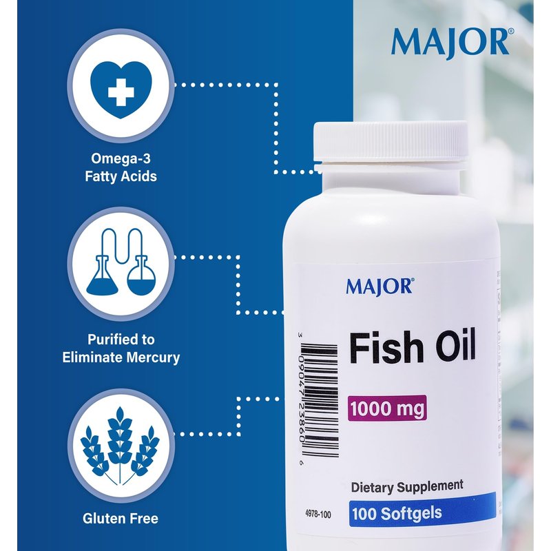 - DIETARY SUPPLEMENT: The Major Omega-3 Fish Oil is a fish oil dietary supplement, providing 1,000 mg per softgel serving.