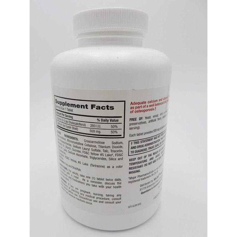 Major Pharmaceuticals Oyster Shell Calcium with Vitamin D 500MG+D, 300 Count