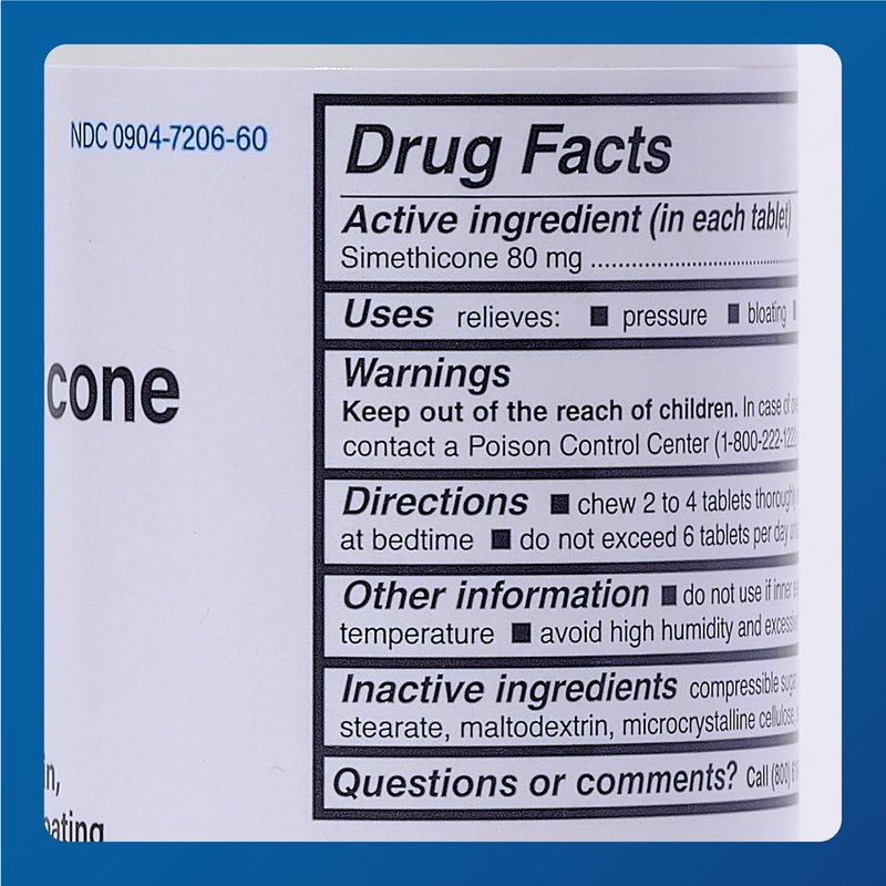 Major Simethicone Gas Relief 80 mg - Anti Flatulence, Bloating and Gas Pressure Aid - 100 Chewable Tablets