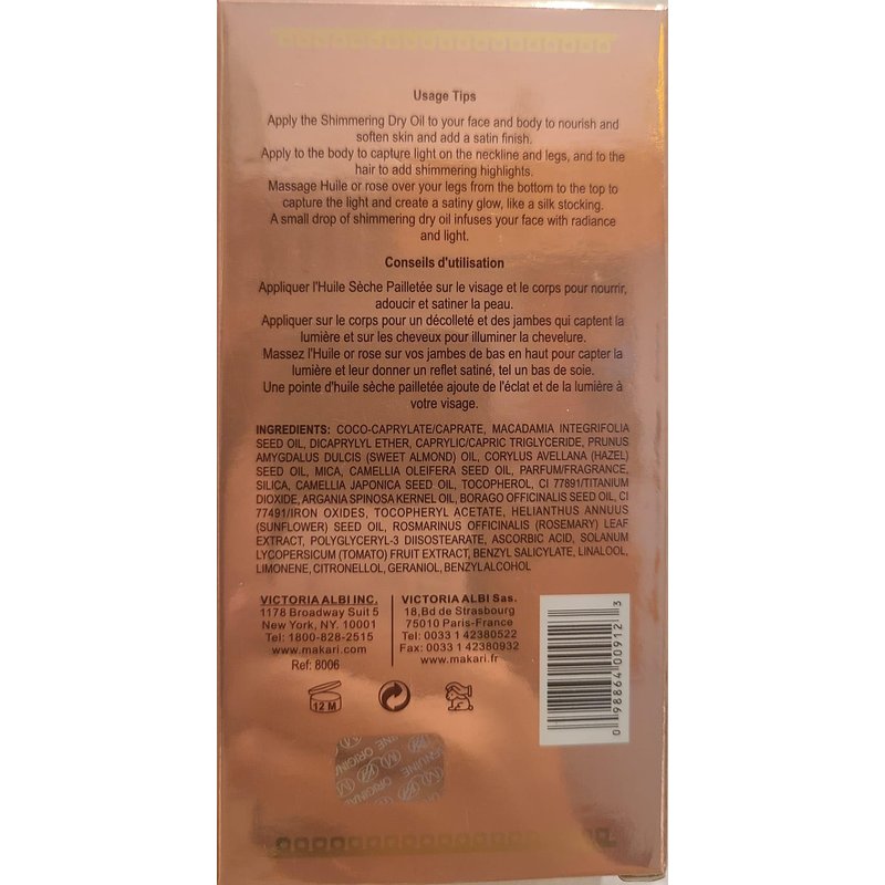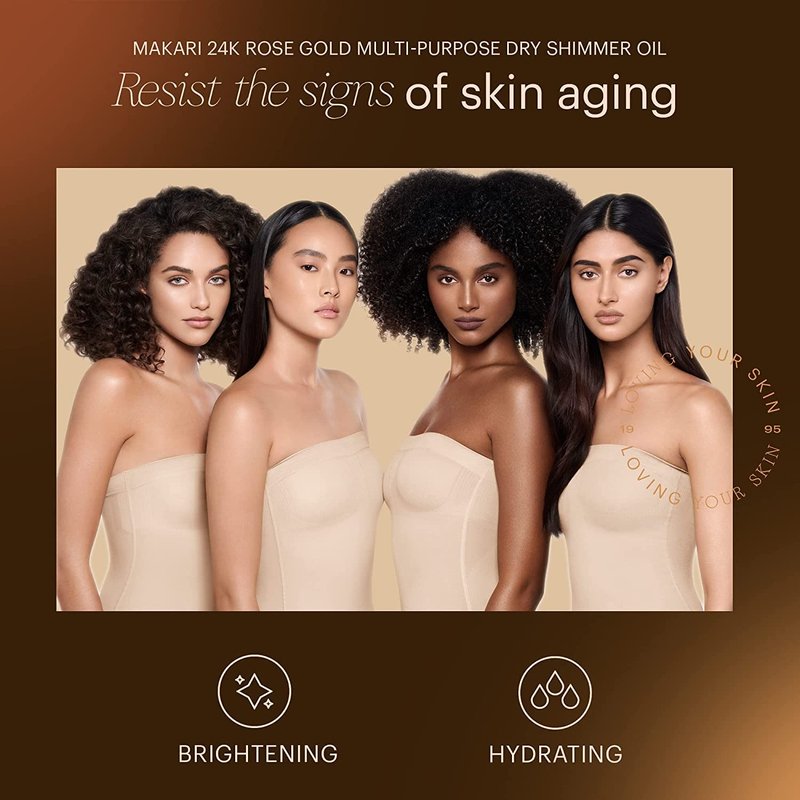 Makari 24K Rose Gold Multi-Purpose Dry Shimmer Oil (3.38 fl oz) | Body Shimmer Oil for Face, Hair and Body | Shimmer Body Oil with Real Gold Flakes | Luxurious Dry Body Oil and Shimmering Body Oil