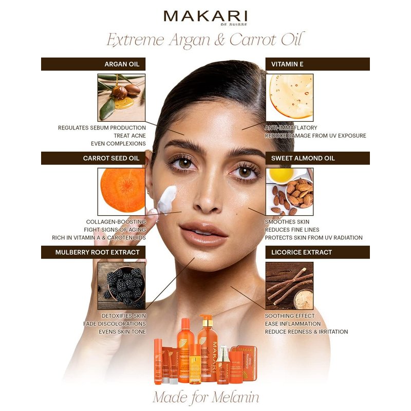 MAKARI Extreme Argan & Carrot Seed Oil Skin Toning 2 Piece Gift Set | Exfoliating Soap & Tone Boosting Body Lotion Ideal for All Skin Types, Botanical Self Skin Care Kit with Free Makeup Bag