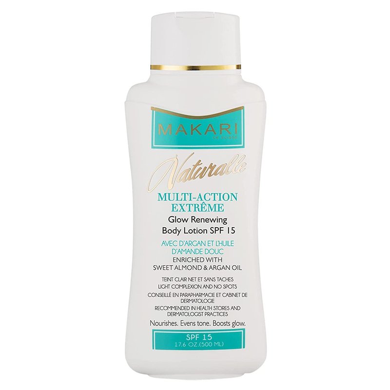- BRIGHTENS YOUR SKIN: Makari Naturalle Multi-Action Extreme Body Lotion SPF15 is a unifying body lotion that helps diminish marks and blemishes to reveal your skin’s natural, silky, smooth glow.