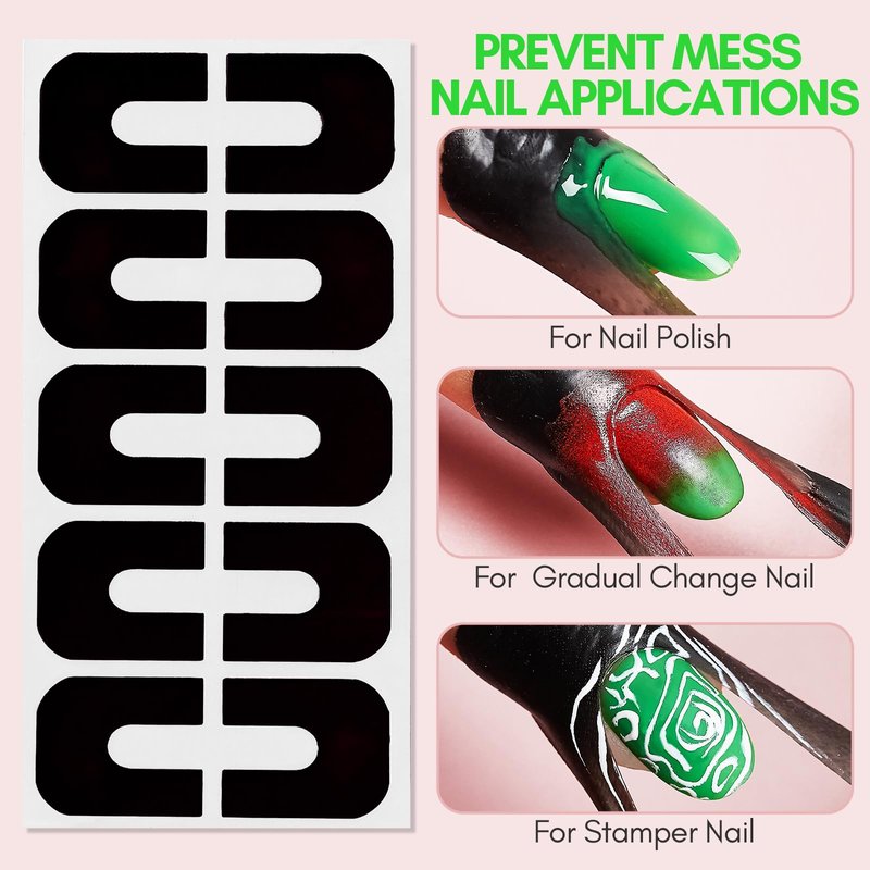 About the Product : ✒This peel off tape nail polish guard has "U" shape design ,With this Innovation design, you can Wrapped around the fingers or toes on both sides prevent from nail polish overflow protect your skin, perfect tool to keep new-made polished nail away from smearing; ✒Made of soft material,so this nail polish protector with good tensile elastic, suitable for various sizes of nails type; ✒An essential manicure tool kit for nail art practitioners, trainers, beginner and student;Suitable for both professional use and personal home use or salon use; ✒This nail polish protector is safe to use without any chemicals.Non-slip Surface Texture. Soft and have good stretch elasticity, it won't hurt your skins; ✒It’s very handy for easy clean up around the nail beds after a messy art treatment; ✒Can be applied to fingers or toes. Recommend for For Nail Art Painting, Gradients, Stamping, French Manicure; Using Instructions: 1)Clean the skin around nail. 2)Pick up the nail protector and stick on your finger. 3)Wrapped around the finger. 4)It is ok and you can paint the nail as you want. 5)When you complete the nail art design, just pick up it. SWEET TIPS: Please wait the nail polish totally dry, then peel off our this sticker tape slowly, it can avoid the sticky film leave on your hands and nails.
