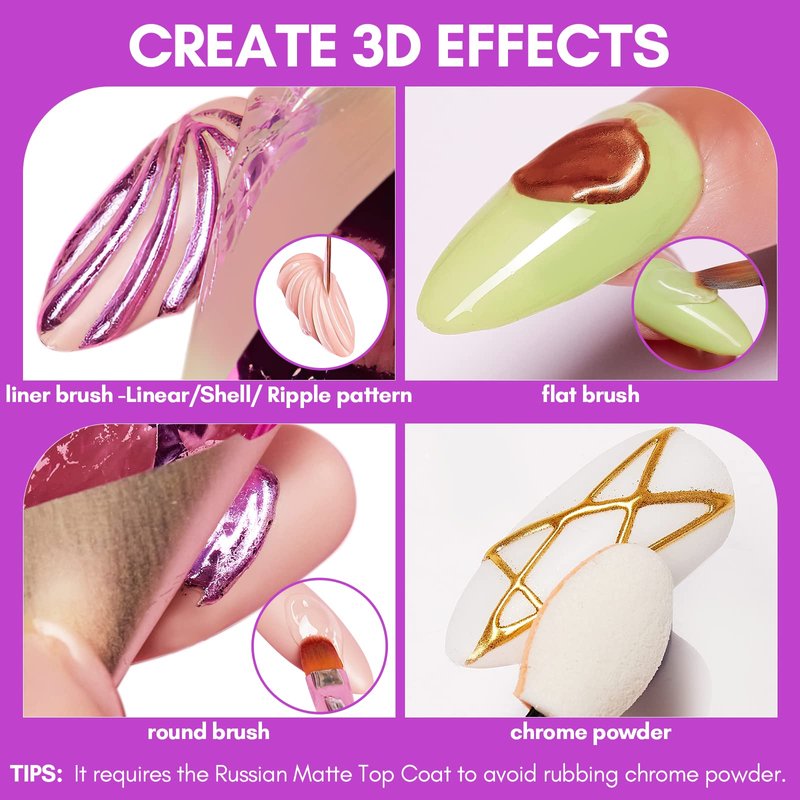- Create 3D Effects: The foil glue gel for nails allows for a three-dimensional effect when transferring nail foils stickers.It can design Linear / Shell / Ripple pattern,etc.with liner brush and use with chrome powder, making the nail foils nail art design more dynamic and eye-catching.