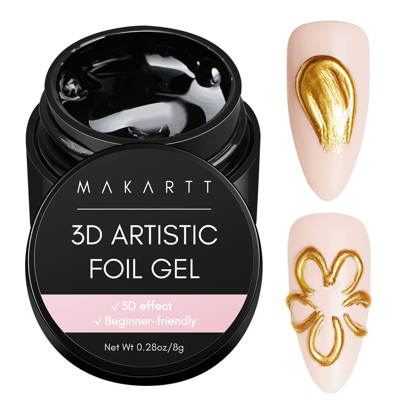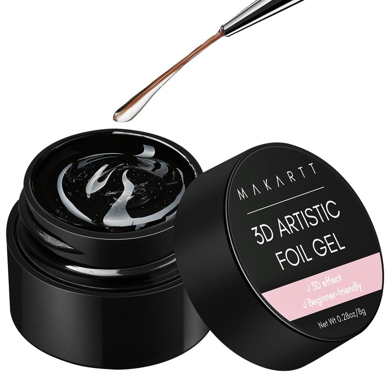 Makartt 3D Nail Foil Glue, 8ml Foil Transfer Gel Foil Adhesive Glue for Nail Foil Sheets, Nail Foil Kit for 3D Gel Nail Art Linear/Shell/Ripple Design Manicure Salon DIY UV Lamp Required