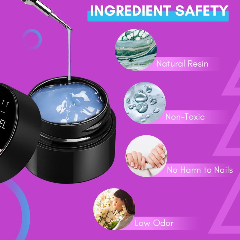 - Effortless & Precise: Create beautiful nail designs effortlessly with 3d clear nail gel! Our nail gel is not a 3D hard gel, the texture is relatively thin, doesn't stick to your brush,allow for smooth application and the ability to create long lines in one go. Say goodbye to frustrating smudges and hello to flawless nail art!