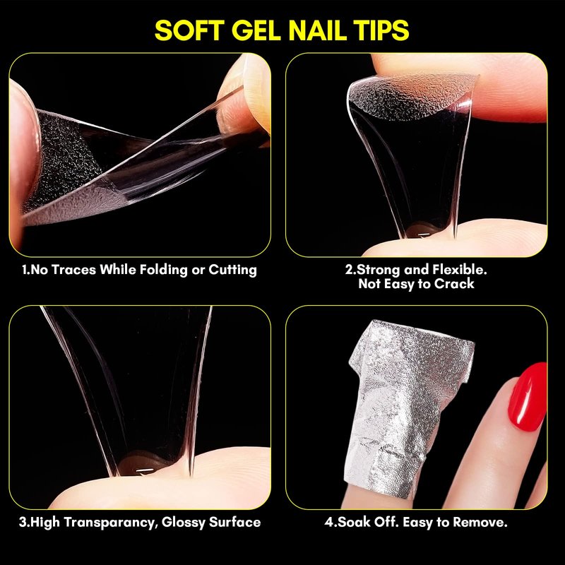 ★Strong,durable,sturdy and long lasting soak off soft gel nail tips.