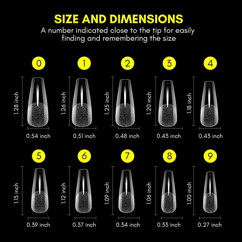 - 【Coffin Shaped Nail Tips】 - Coffin nails, also referred to as "ballerina nails", are like stiletto nails but with a tapered end, which creates an effect that thins and elongates your hands and makes them flatter fingers of all shapes and sizes. The versatility and simplicity to re-create make this style always one of the most popular and trendy nail shape
